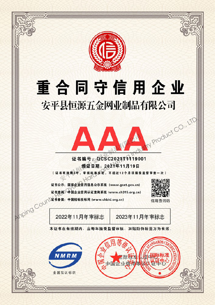 多年來(lái),安平縣恒源五金網(wǎng)業(yè)制品有限公司堅(jiān)持“科技興企、質(zhì)量立業(yè)”的經(jīng)營(yíng)理念和“誠(chéng)心為本、客戶(hù)至上”的合作宗旨,優(yōu)化生產(chǎn)工藝,打造優(yōu)質(zhì)產(chǎn)品,提供完善的服務(wù),受到國(guó)內(nèi)外客戶(hù)的一致好評(píng),產(chǎn)品行銷(xiāo)全國(guó)各地,并出口美國(guó)、德國(guó)、韓國(guó)、日本、臺(tái)灣等國(guó)家和地區(qū)。